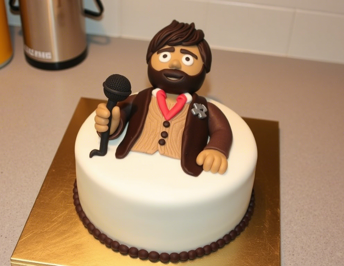 - Торт с уникальным дизайном или фото. Если у вас нет идей, которые вы хотели бы воплотить в жизнь, то обратитесь к помощи кондитера. Подходящие романтические темы для оформления – профессия вашего супруга, его хобби, интересы, черты характера;